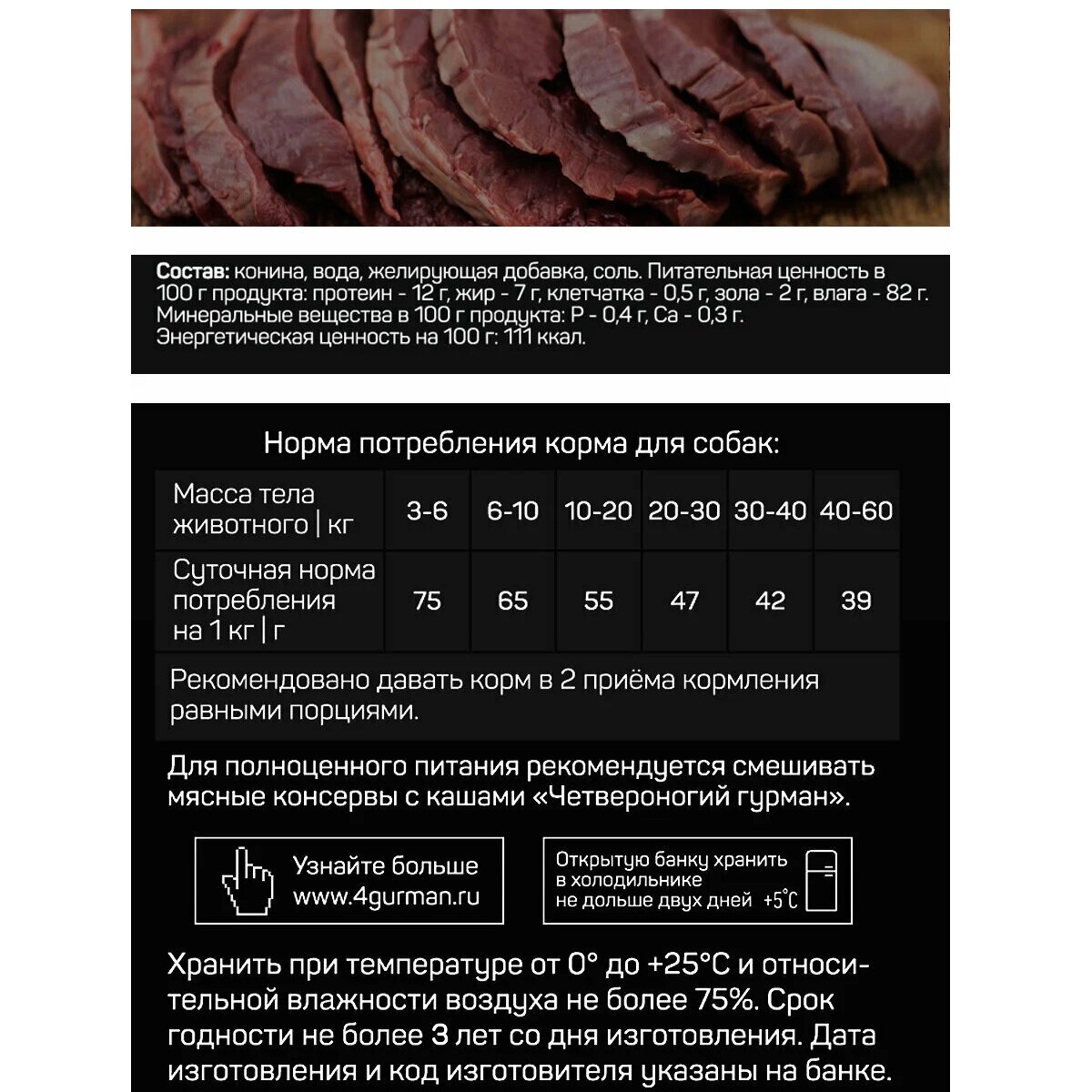 Четвероногий Гурман влажный корм для взрослых собак всех пород, конина натуральная в желе 340 гр (2 шт)