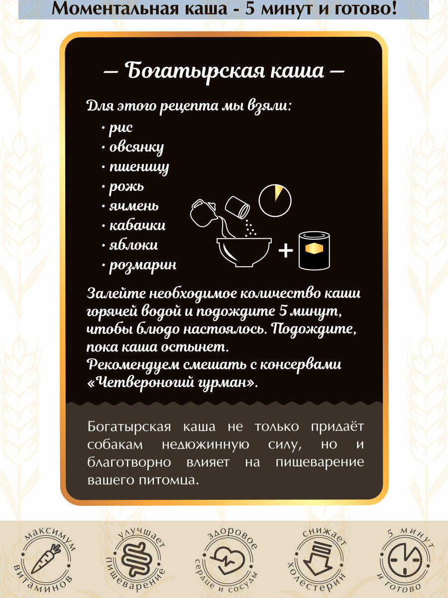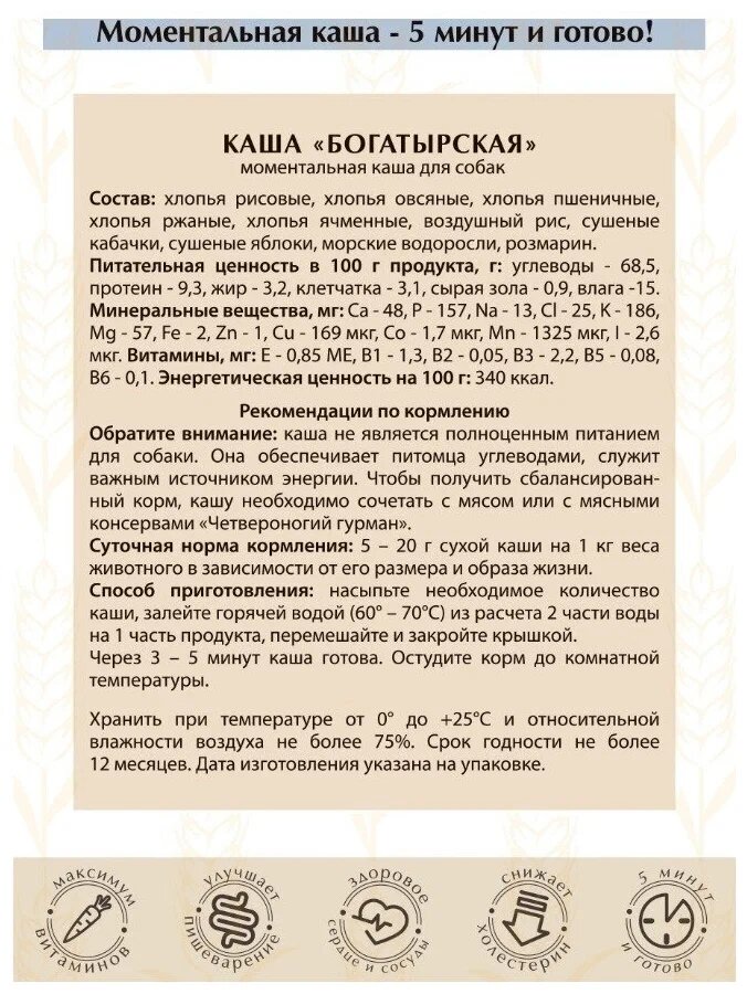 СохранитьКаша для собак "Богатырская" , злаковые хлопья моментального приготовления, 300 г х 6 шт. интересное: