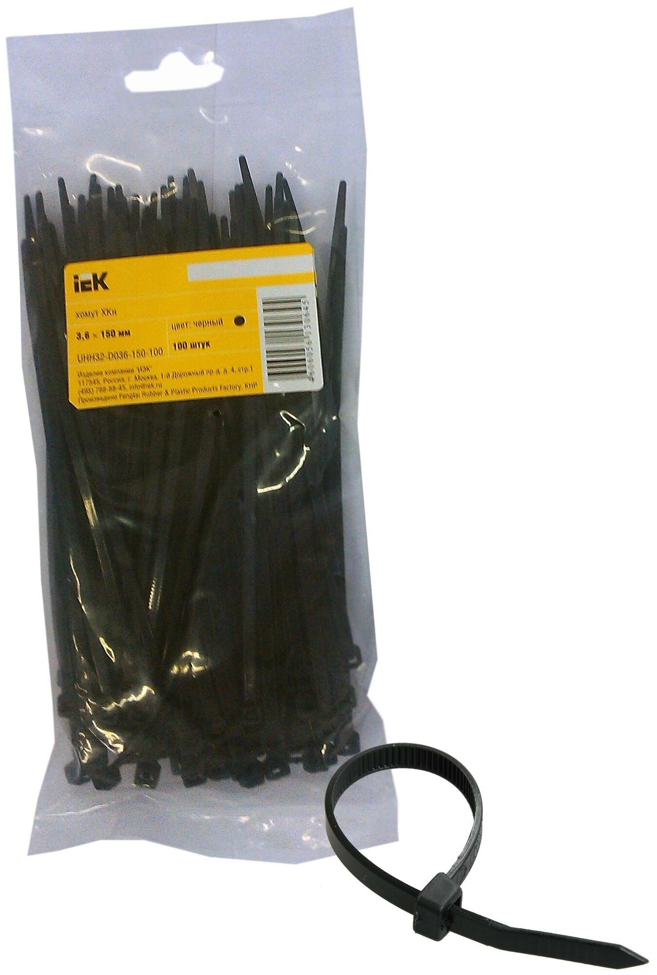 Хомут-стяжка IEK, нейлон, 3,6 x 150 мм, 100 шт, черный интересное: