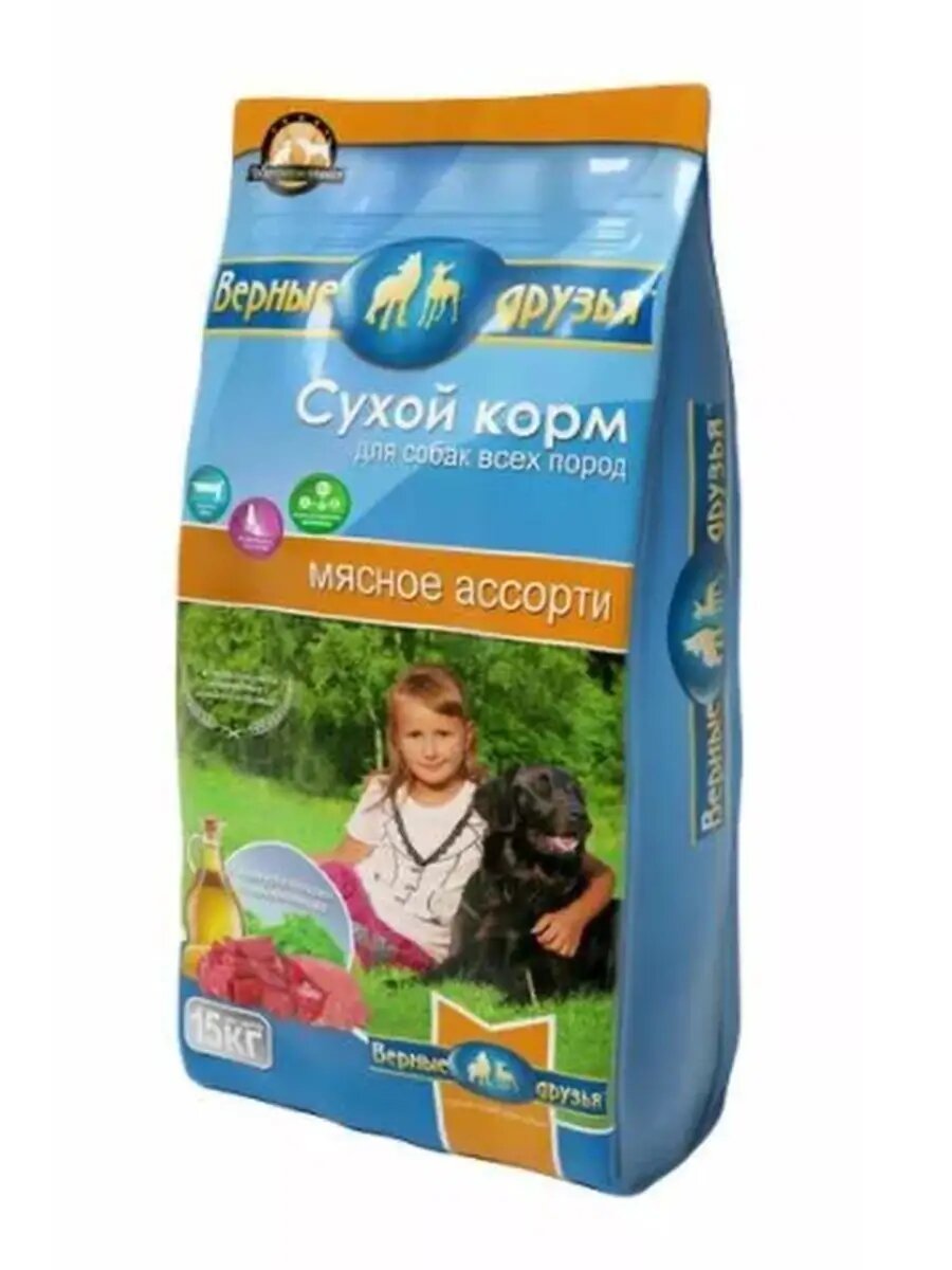 Сухой корм Верные друзья для собак всех пород Мясное ассорти, Пакет, 15 кг