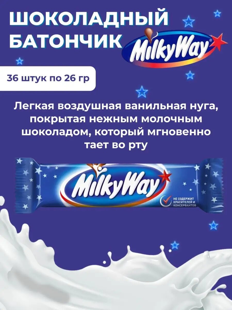 Шоколадные батончики Милки Вей 36 шт по 26 г интересное: