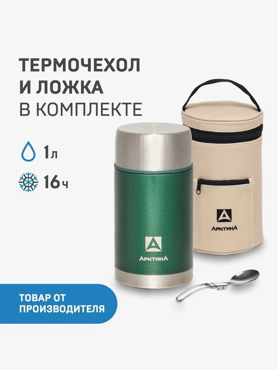 Термос Арктика для еды с супершироким горлом с чехлом 1 л Зеленый