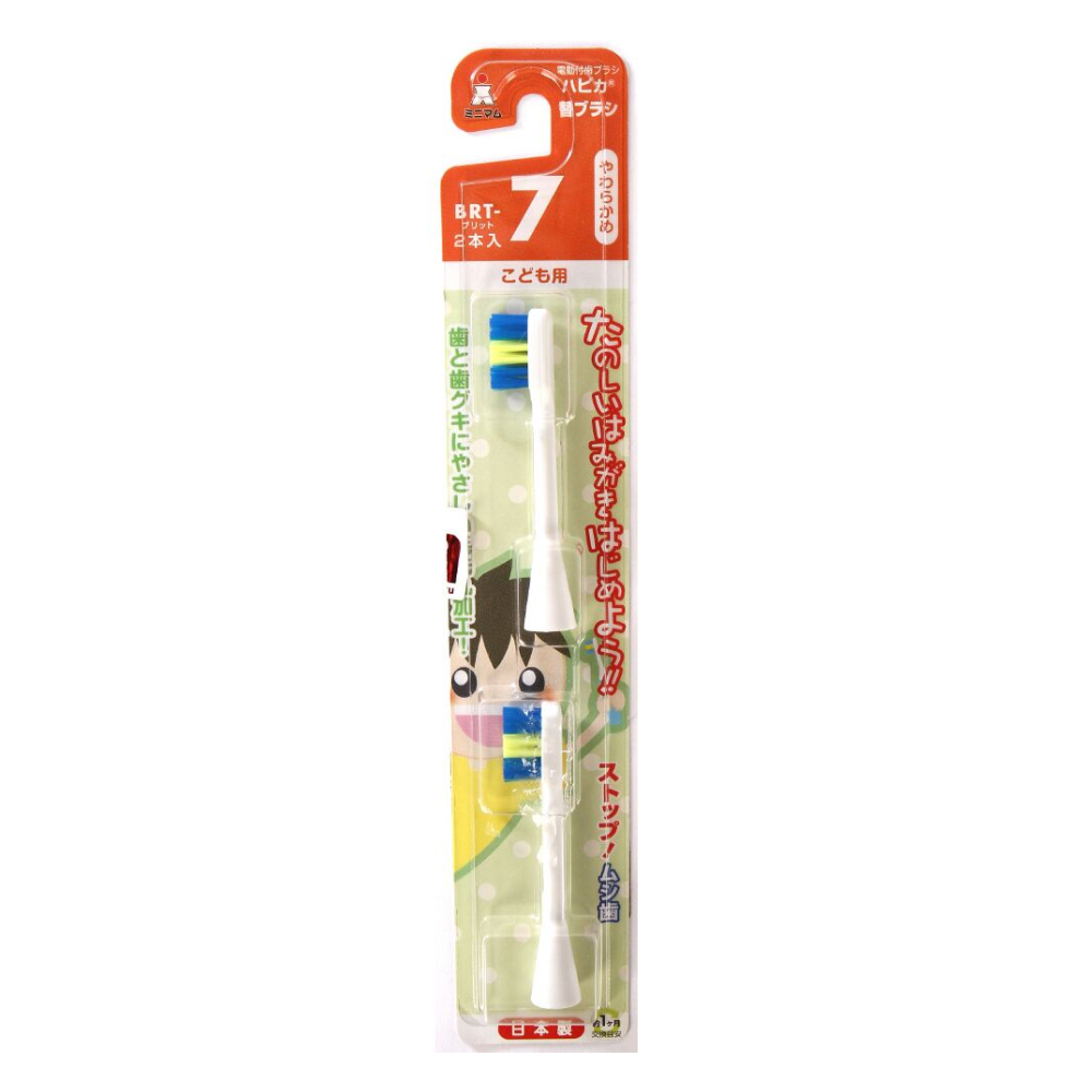 Cменные насадки для электрической зубной щетки Hapica BRT-7 для детей 3 -10 лет, 2 шт. Мягкие щетинки. Подходят для всех зубных щеток Hapica