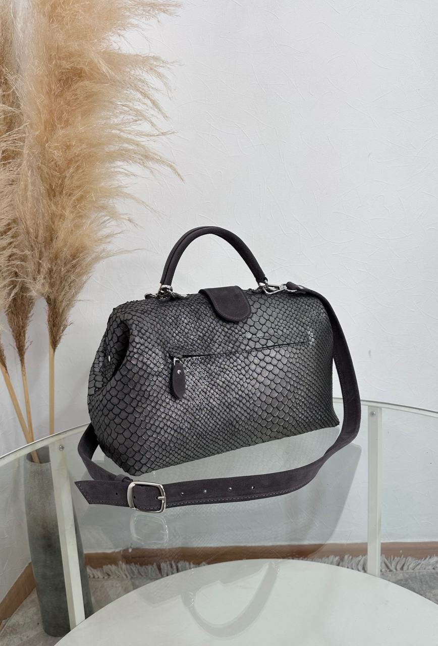 Саквояж из замши с ремнем из питона