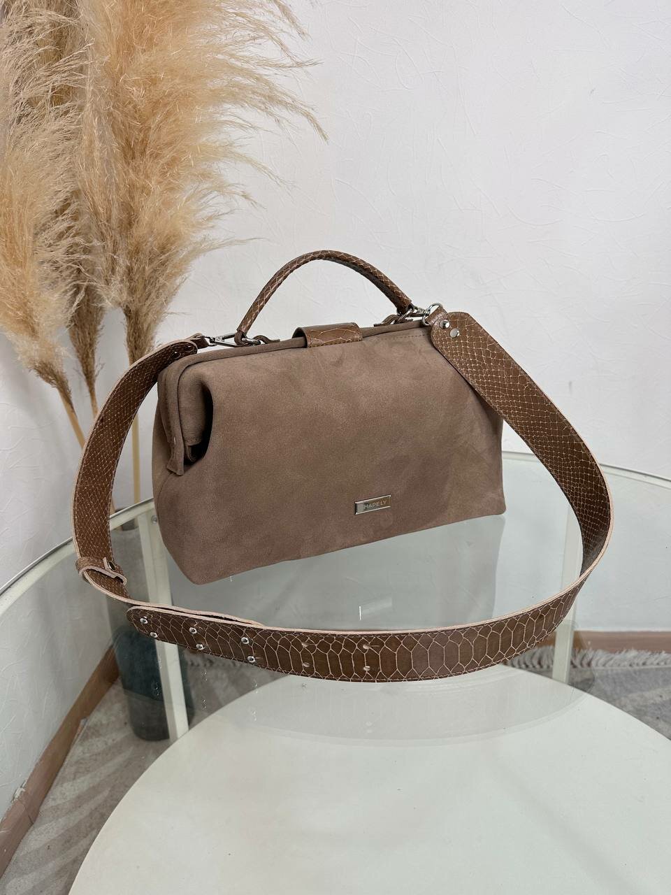 Саквояж из замши с ремнем из питона интересное: