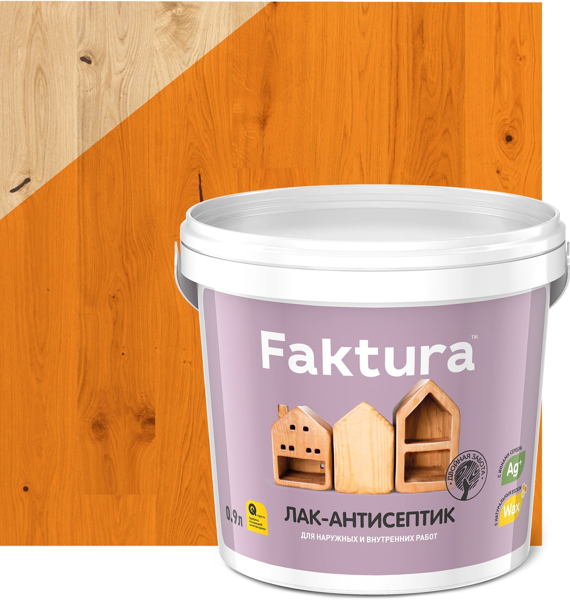 Лак-антисептик Faktura, шелковисто-матовый, полиакриловый, бесцветный, для внутренних и наружных работ, 0.9 л