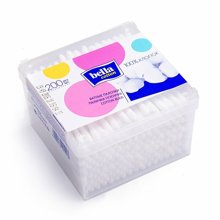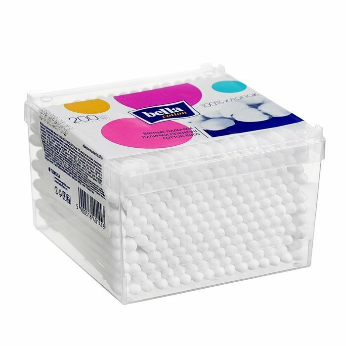 Ватные палочки bella cotton из 100% хлопка в пластиковой коробочке, 350 шт.