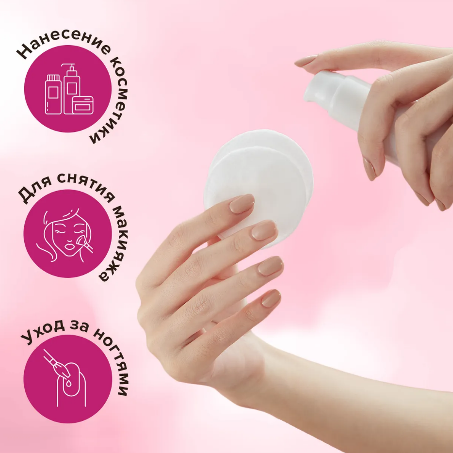 | Плюсы: | Ватные гладкие диски для снятия макияжа |
