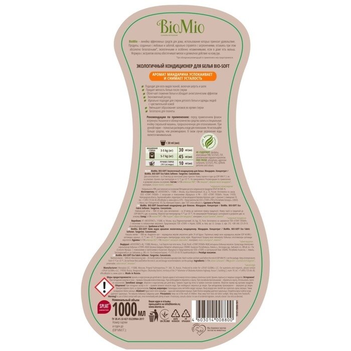 Кондиционер для белья BioMio. BIO-SOFT мандарин конц 1000мл