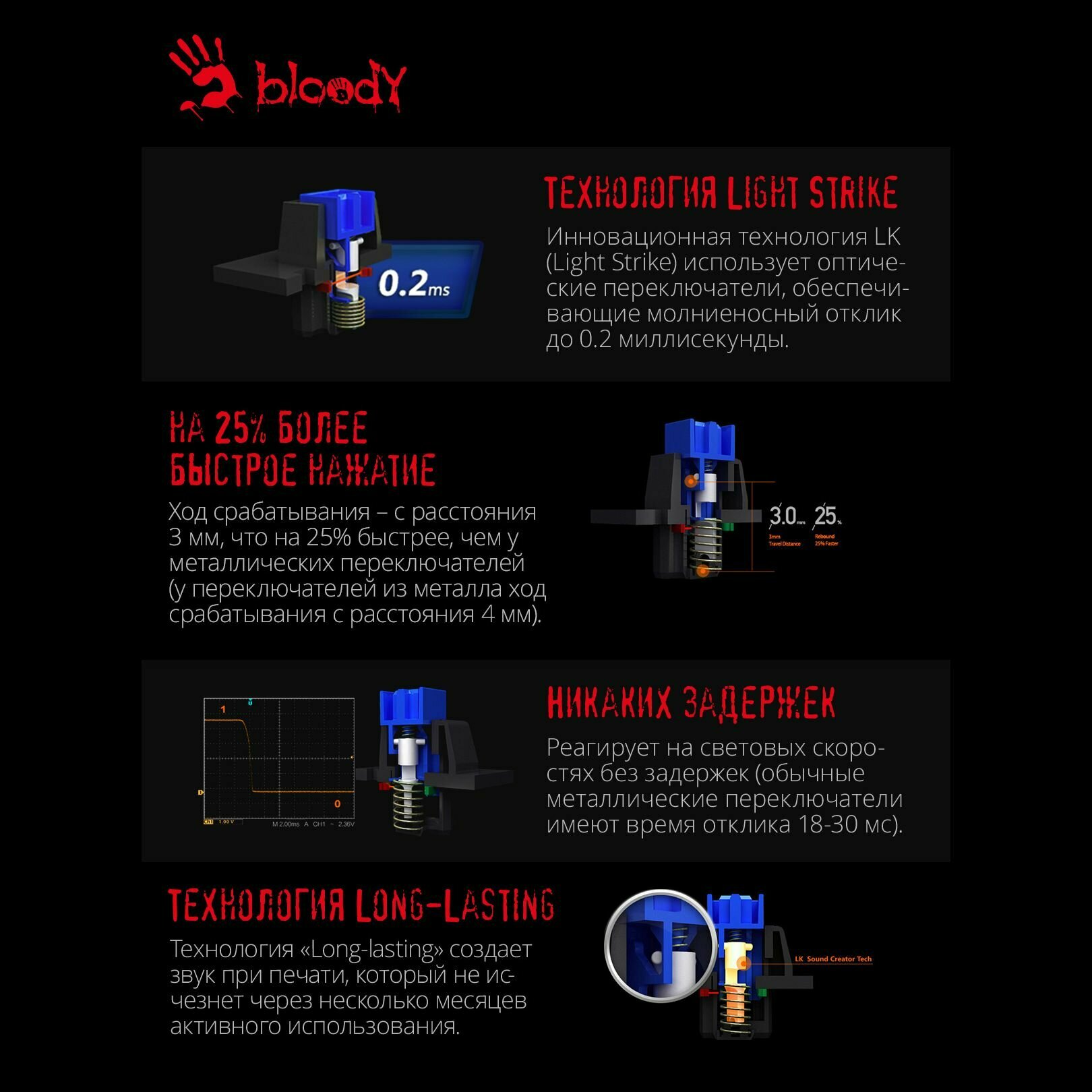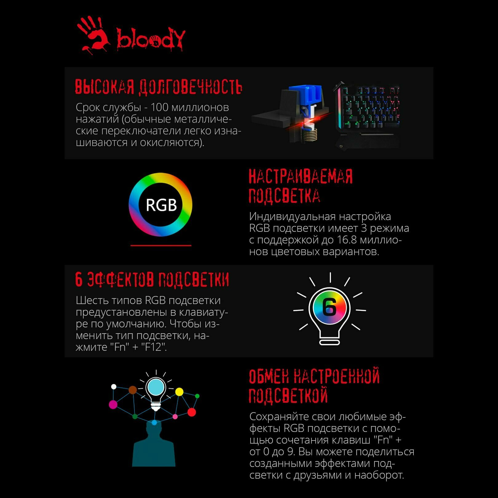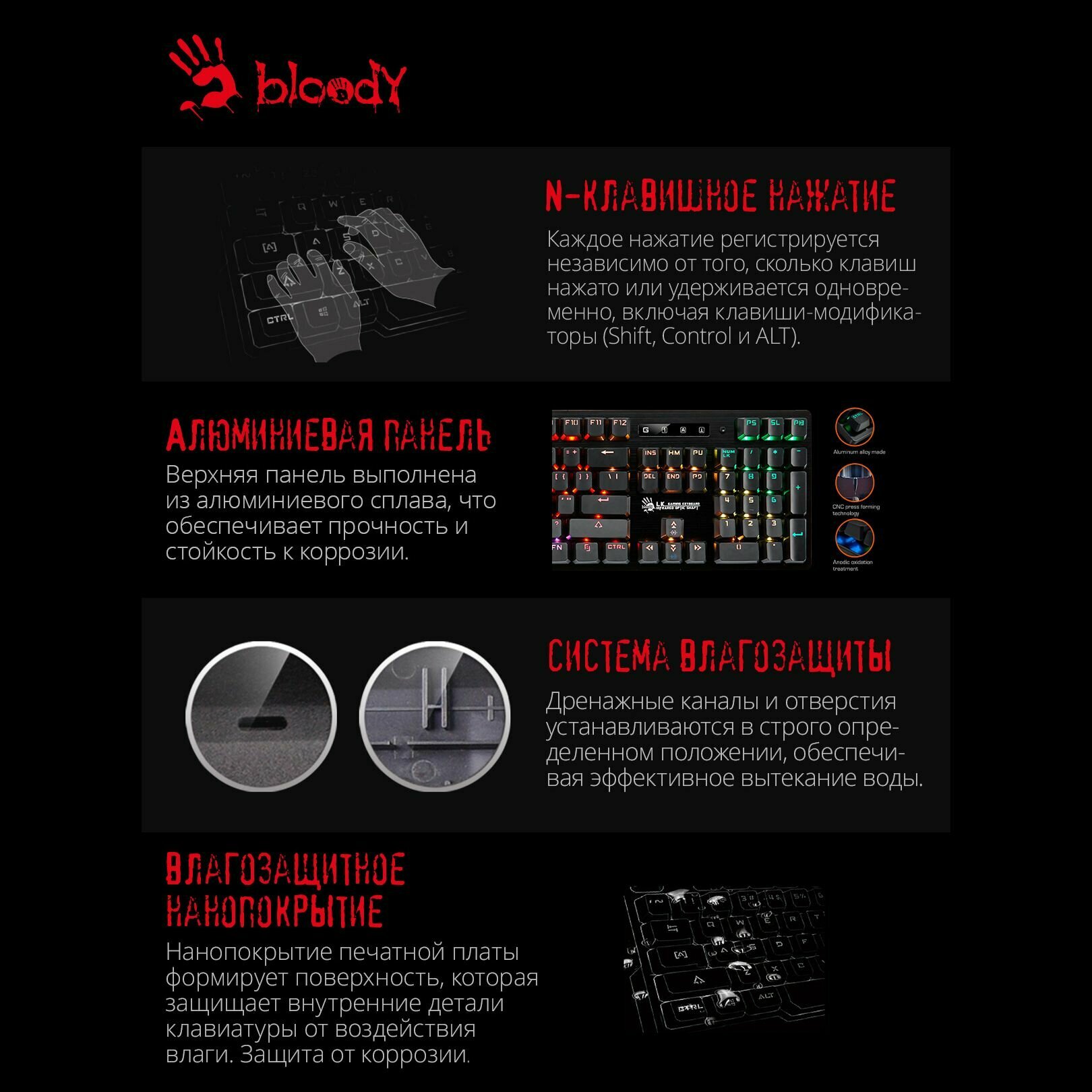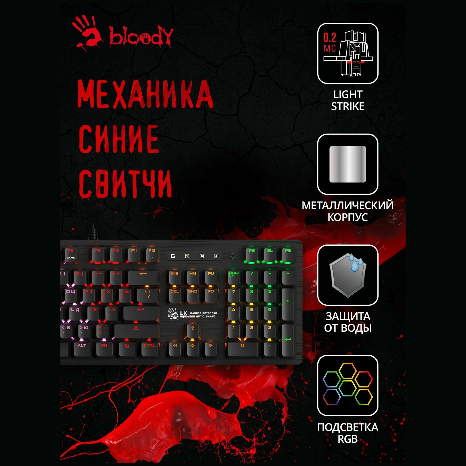 Клавиатура A4Tech Bloody B820R Blue S, русские и английские буквы, черный (b820r black (blue switch))