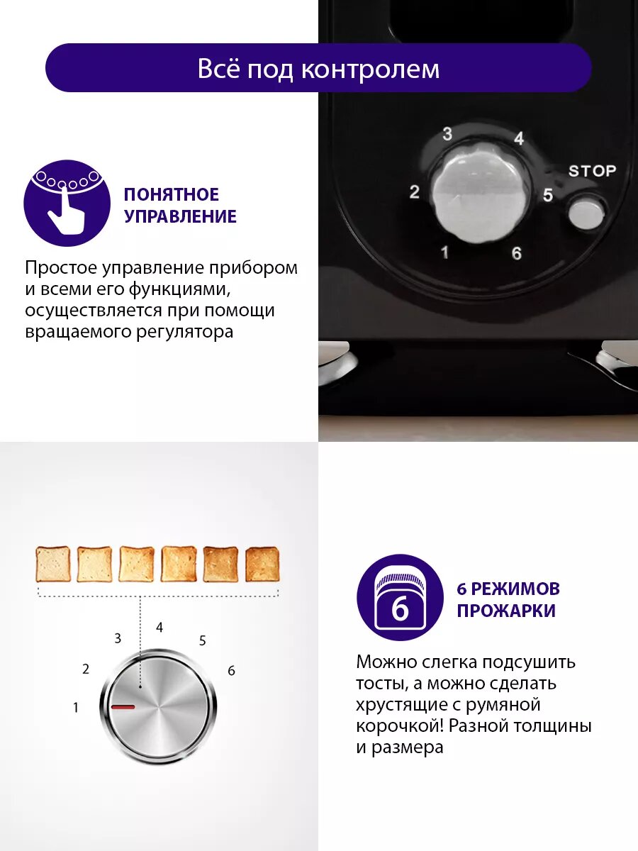 | Плюсы: | механический тип управления. Сразу подаёт два тоста. |