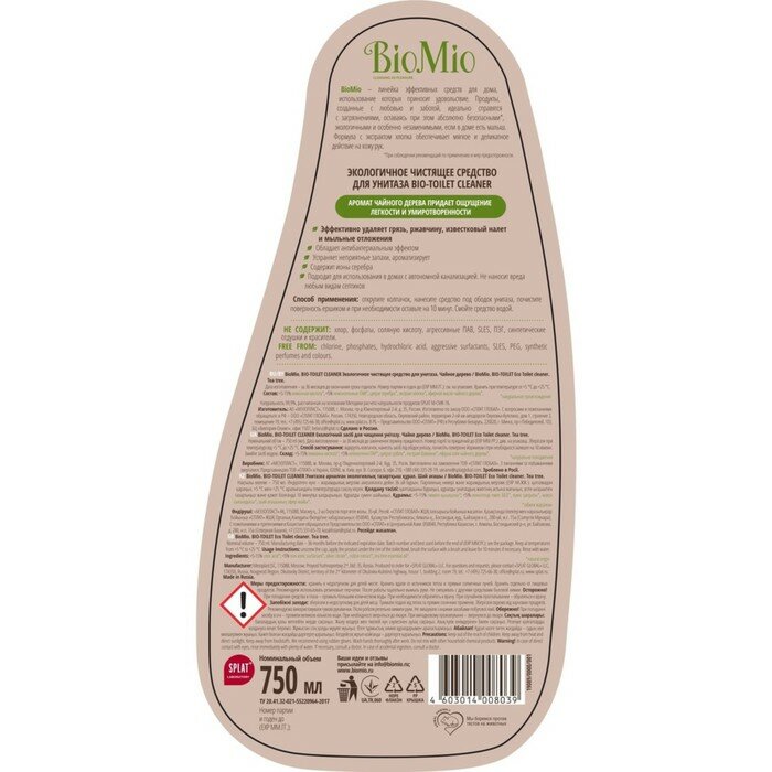 BioMio BIO-TOILET CLEANER Чистящее средство для унитаза. Чайное дерево, 750 мл 506.04151.0101