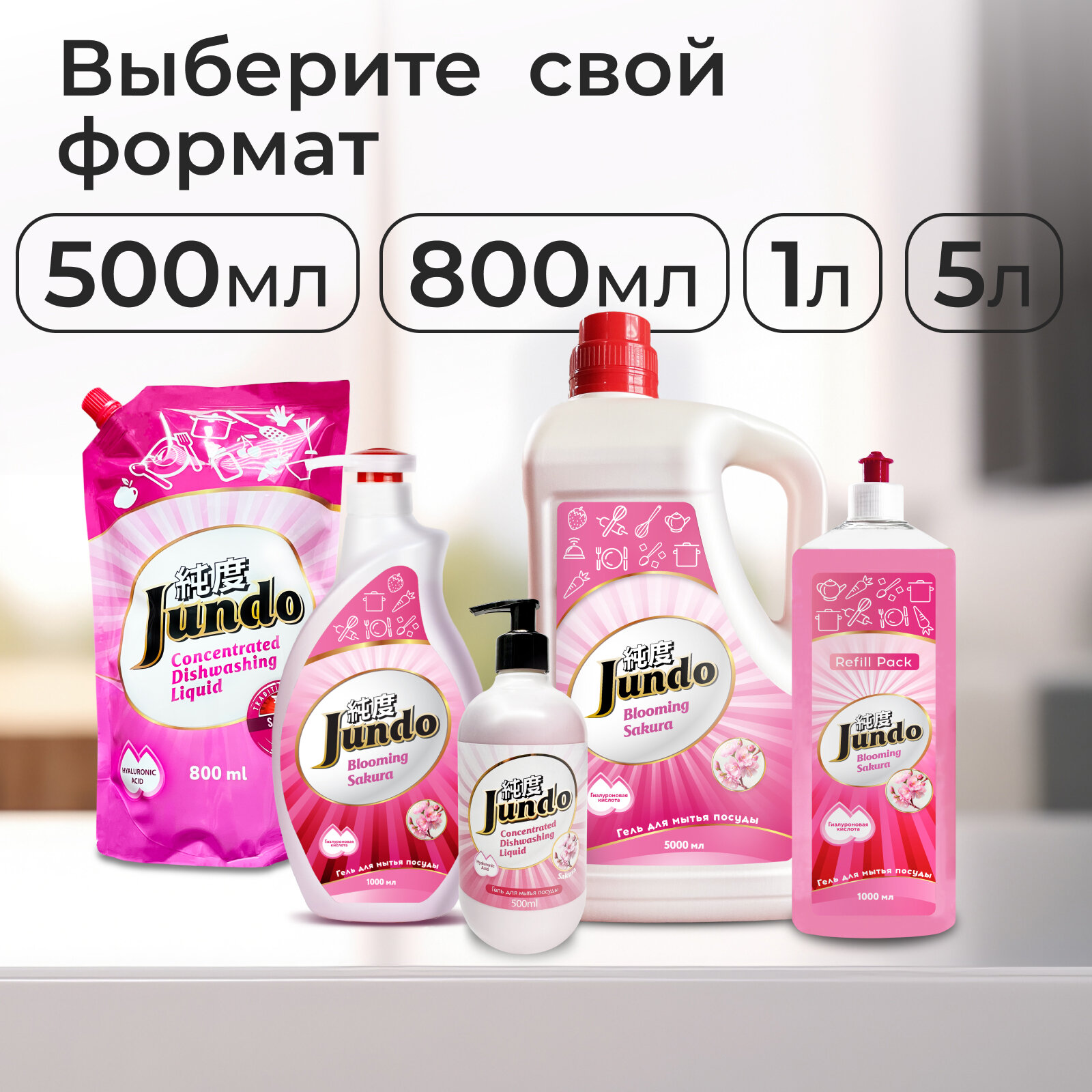 Jundo Концентрированный ЭКО гель с гиалуроновой кислотой для мытья посуды и детских принадлежностей «Sakura»,800 мл.