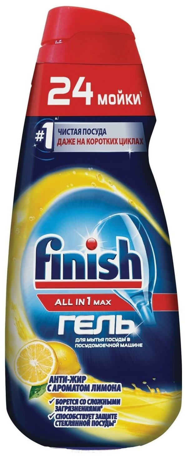 Гель для посудомоечных машин Finish All in 1 Max "Анти-жир" с ароматом лимона, 600 мл