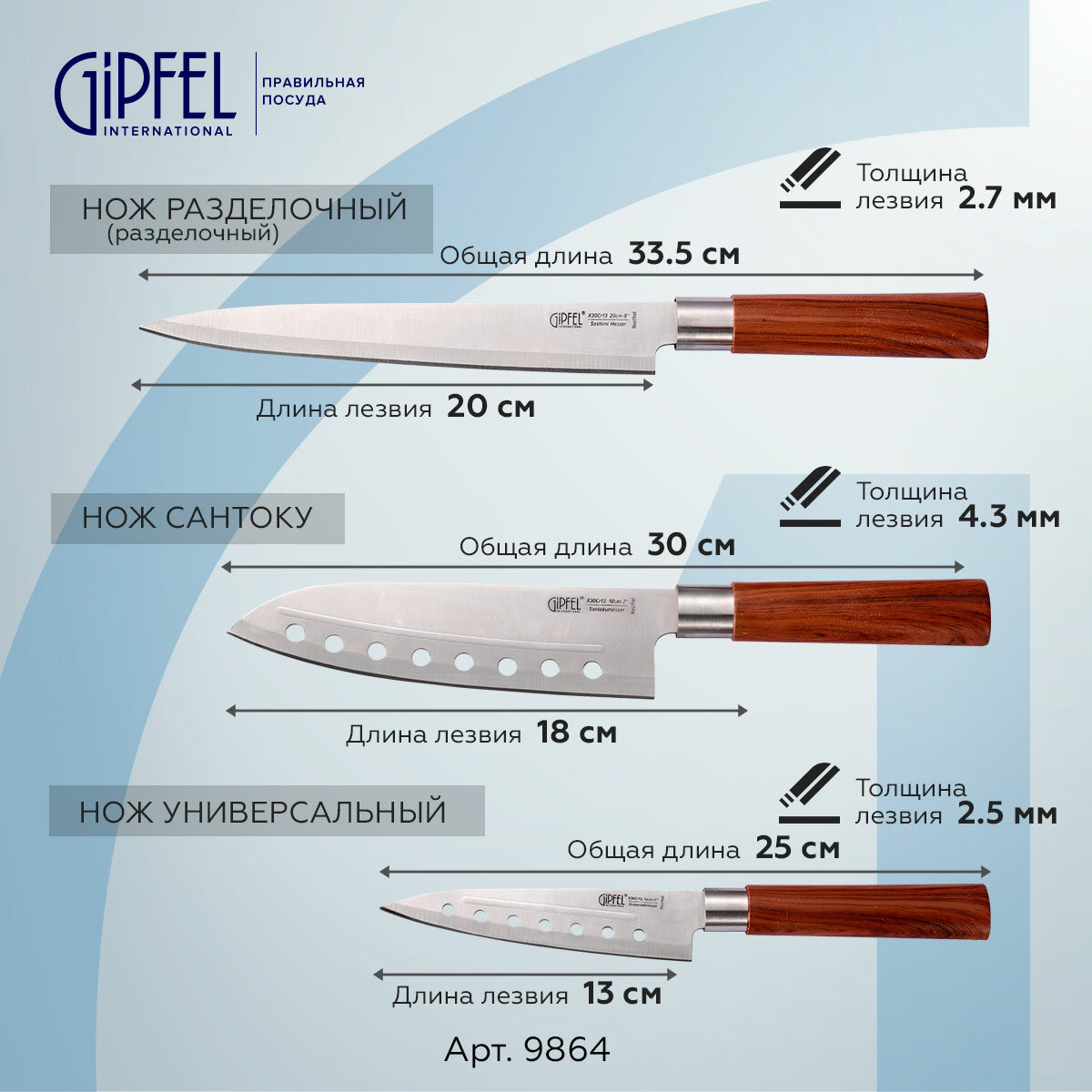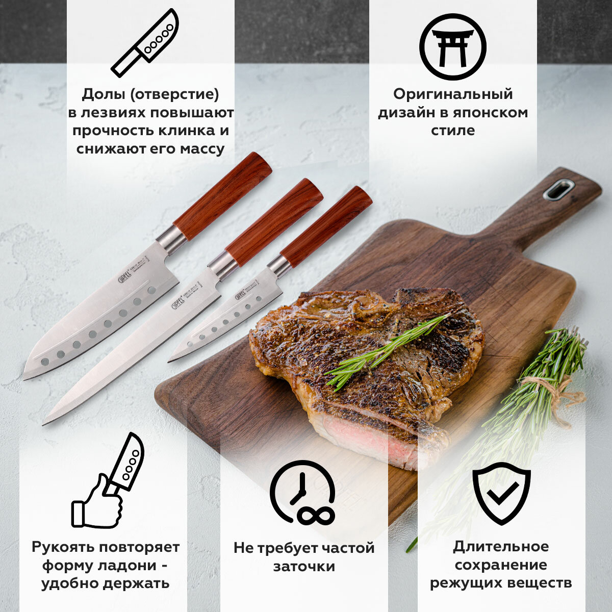Набор кухонных ножей Gipfel Japanese 9864 коричневый интересное: