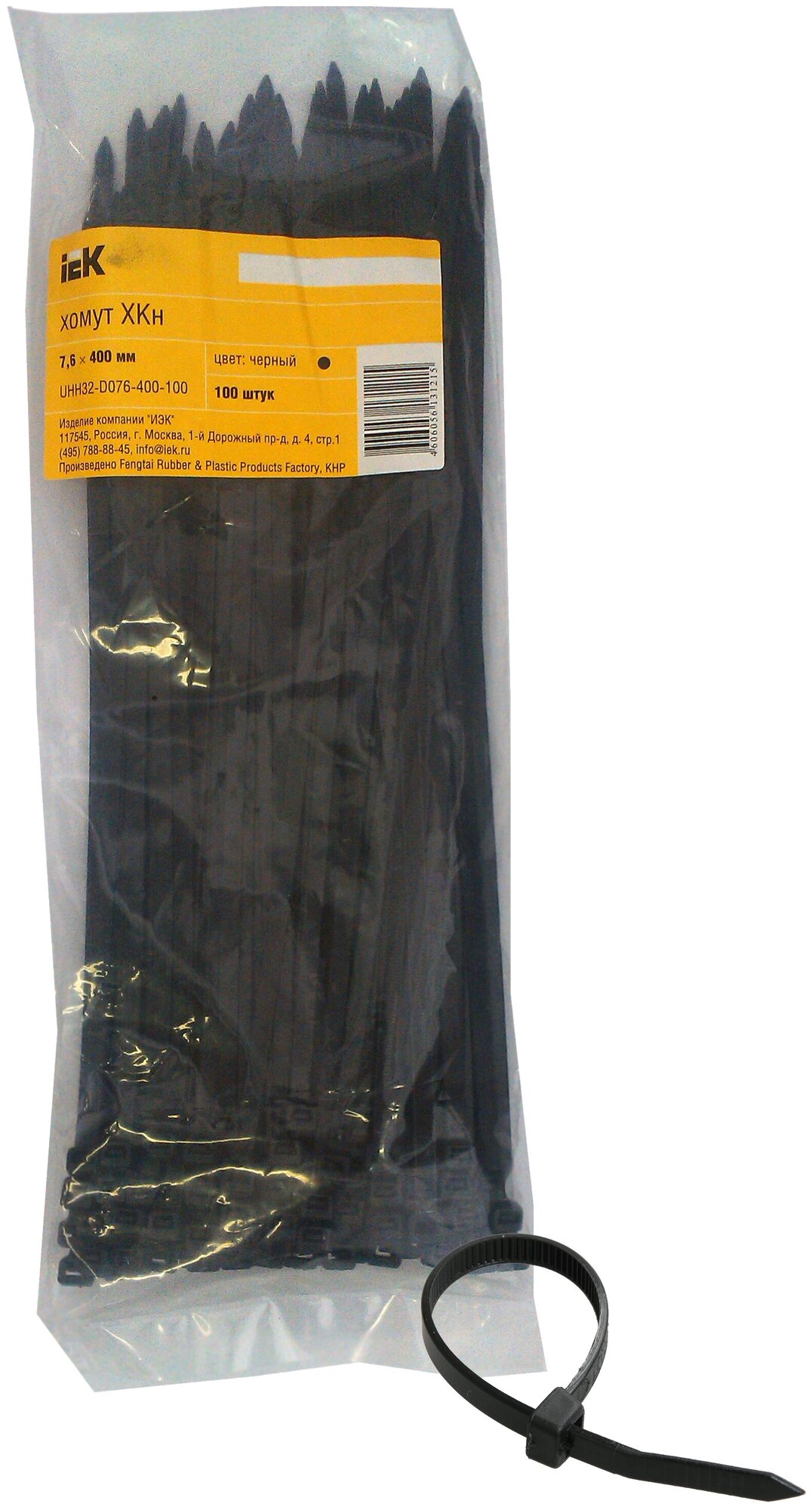 Хомут 7,6х400мм нейлон черные (100шт) | код. UHH32-D076-400-100 | IEK ( 1упак. )