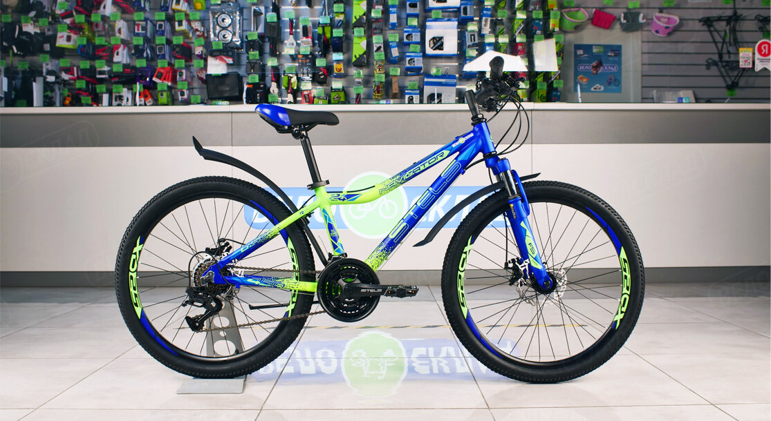 Велосипед подростковый Navigator-450 MD 24" V030, Синий неоновый-Зеленый, рама 13"