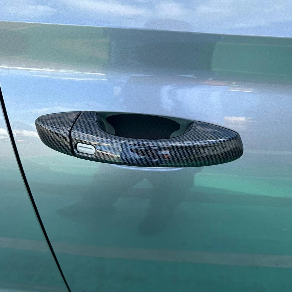 Для Skoda Kodiaq 2017, 2019, 2020, 2021, 2022, Kodiak, углеродное волокно, хромированная Автомобильная боковая дверная ручка, накладка, наклейка, аксессуары для стайлинга, silver 0 button интересное: