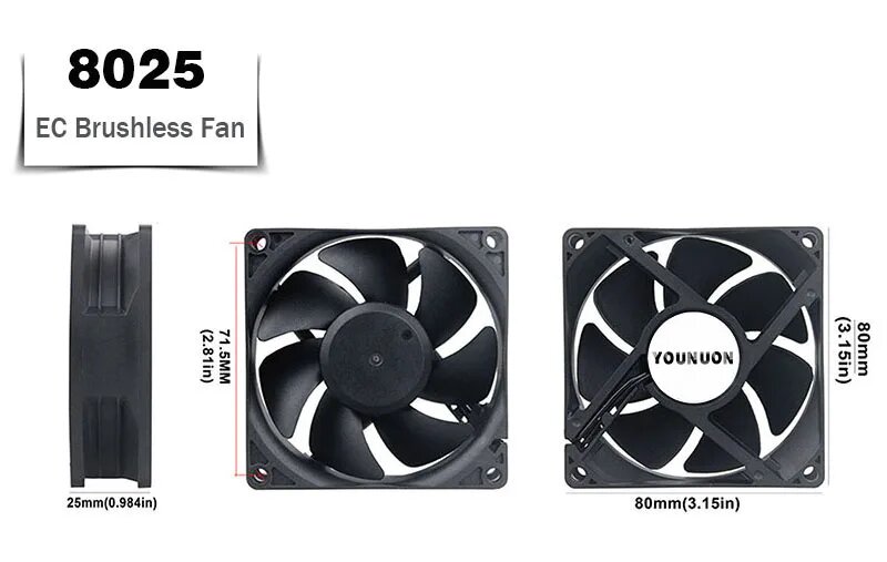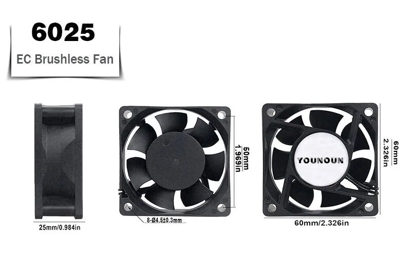 Вентилятор YOUNUON 60/80/92/120мм, Ball 60x60x25MM, Нет цветная (RGB), With Black Grill интересное: