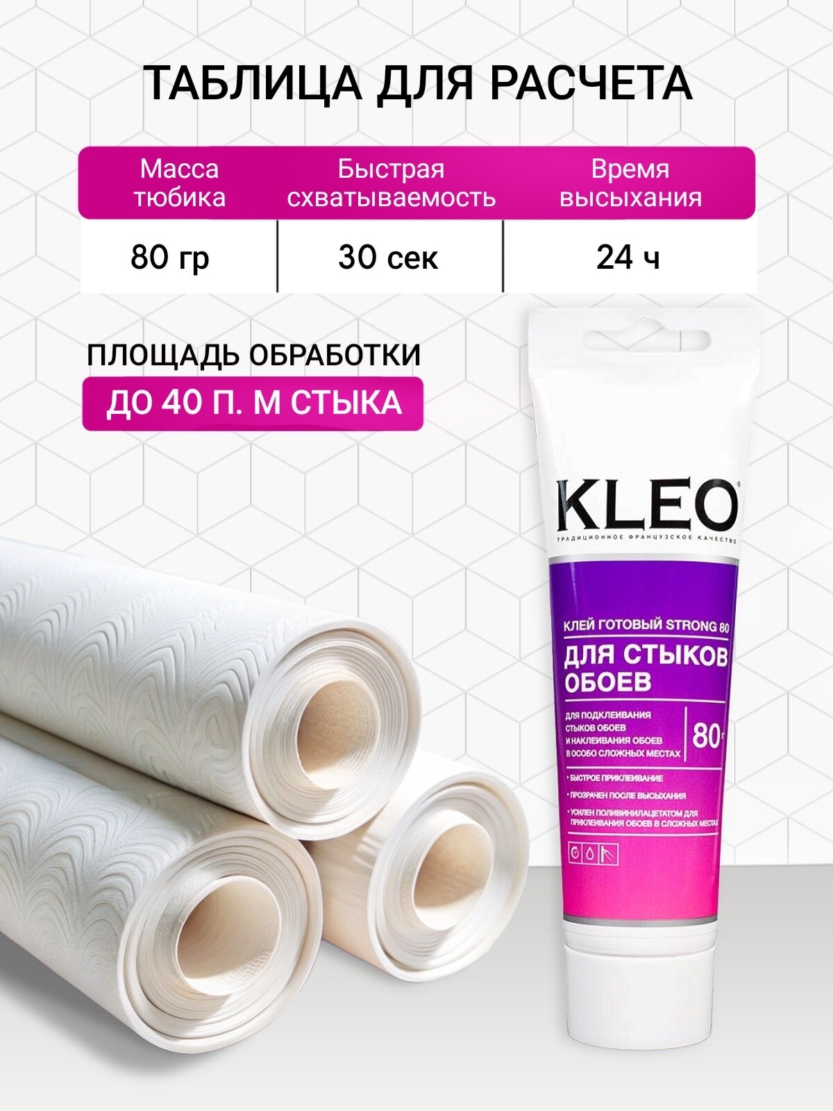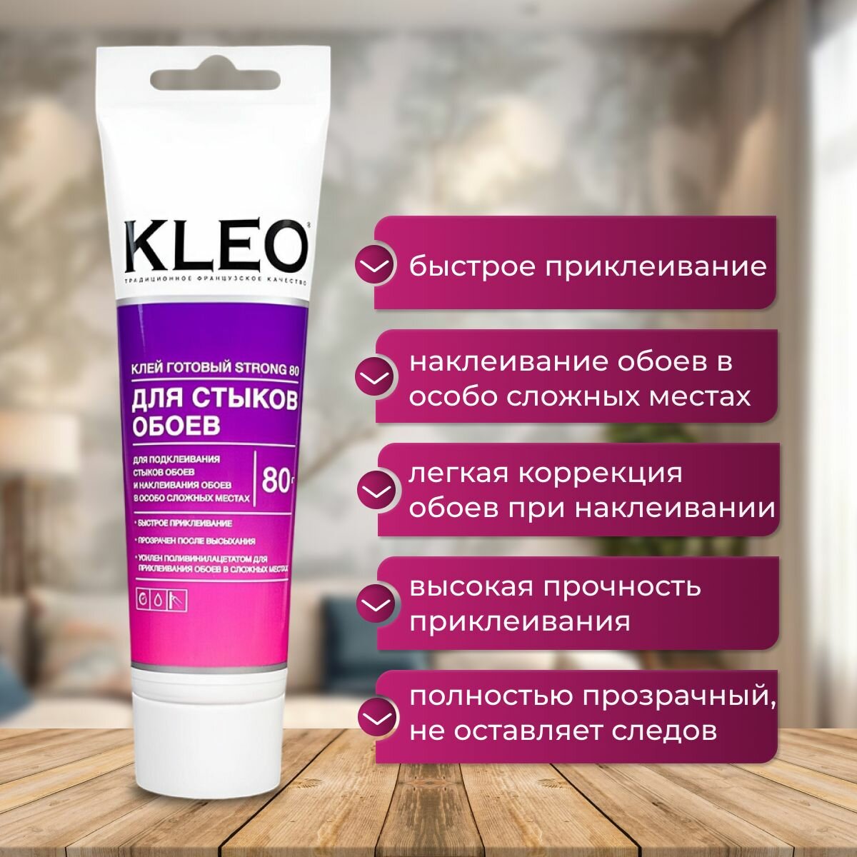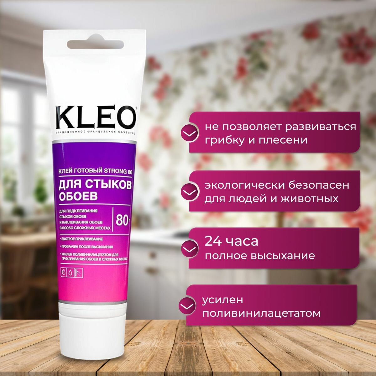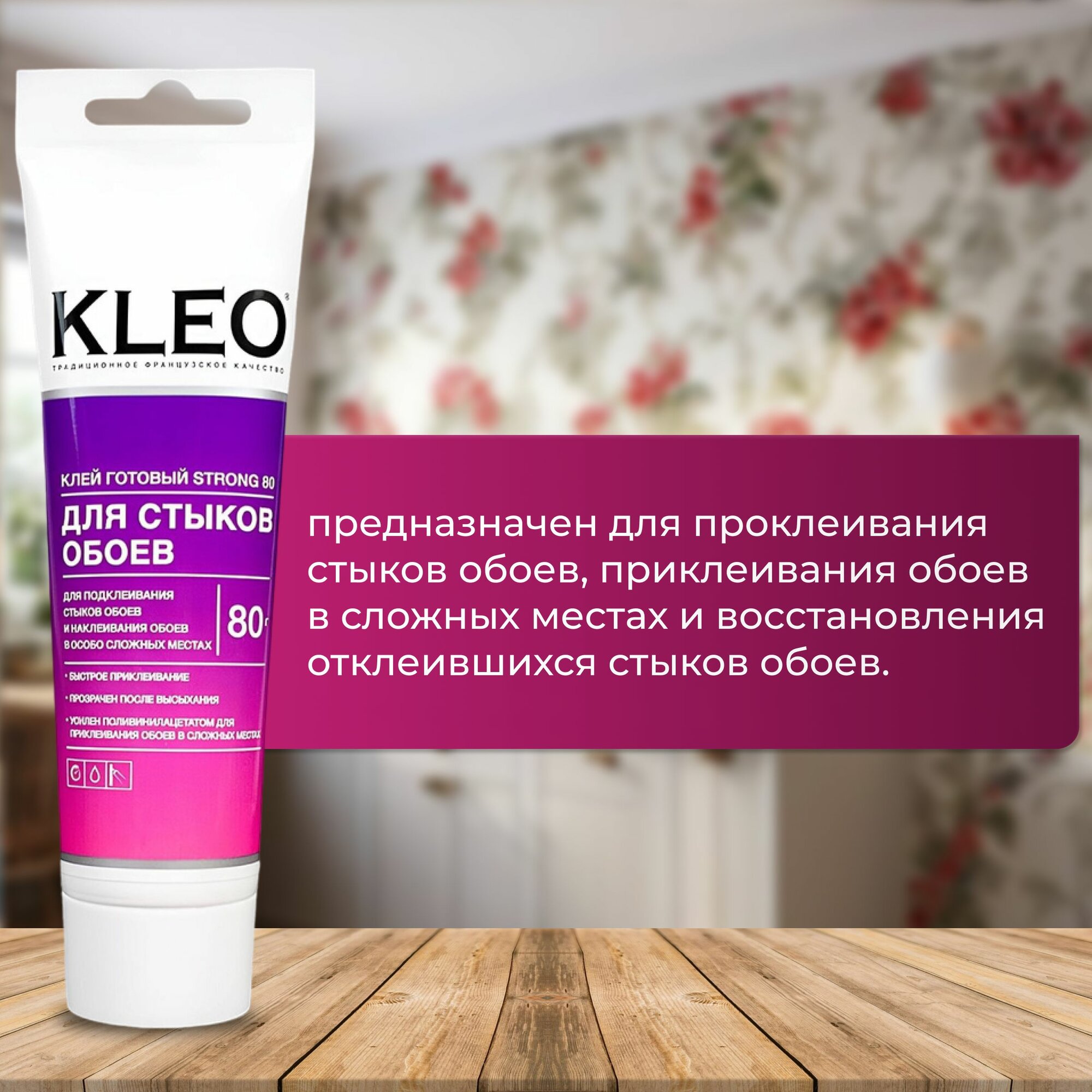 Клей для стыков обоев KLEO STRONG 80 усиленная формула для виниловых, флизелиновых, бумажных обоев, антигрибковая и антисептическая формула Клео Экстра