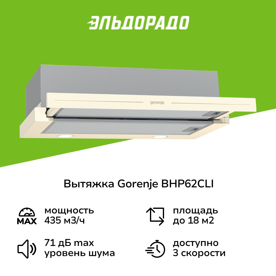 Вытяжка встраиваемая Gorenje BHP62CLI слоновая кость управление: кнопочное (1 мотор)