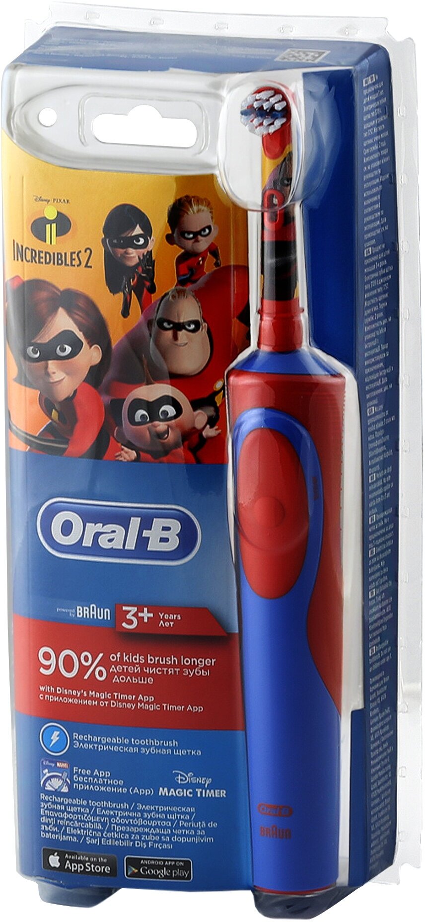 Зубная щетка электрическая Oral-B Vitality Kids D12.513K Incredibles 2 красный/синий