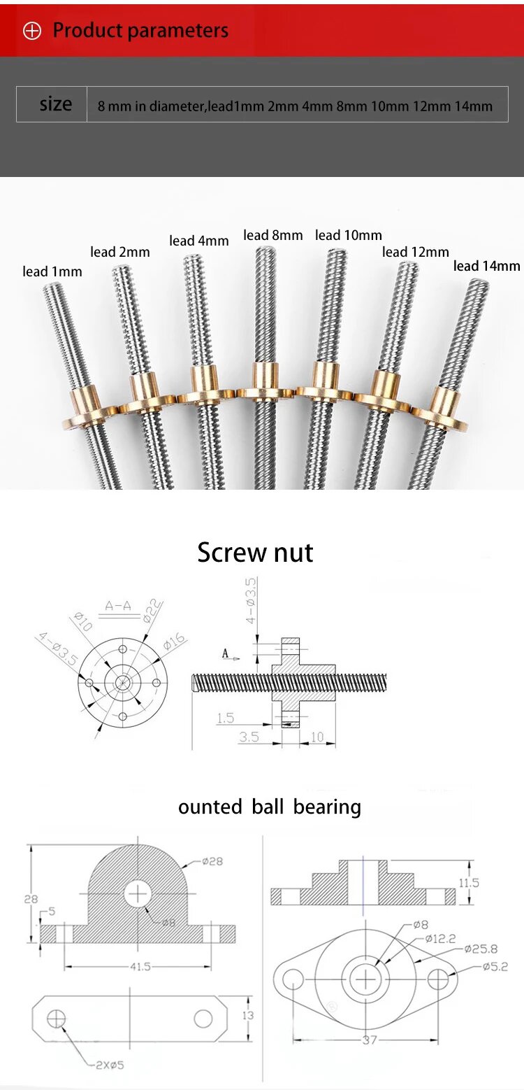 Комплект шагового винта T8 для 3D-принтера и ЧПУ, Lead 2mm KP Set, 400mm интересное: