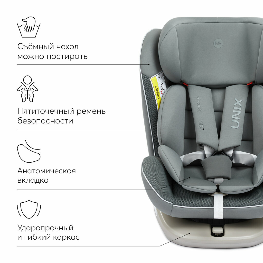 Автокресло детское от 0 до 12 лет Unix Happy Baby группа 0+/1/2/3 (до 36 кг), isofix, поворотная база, темно-серый