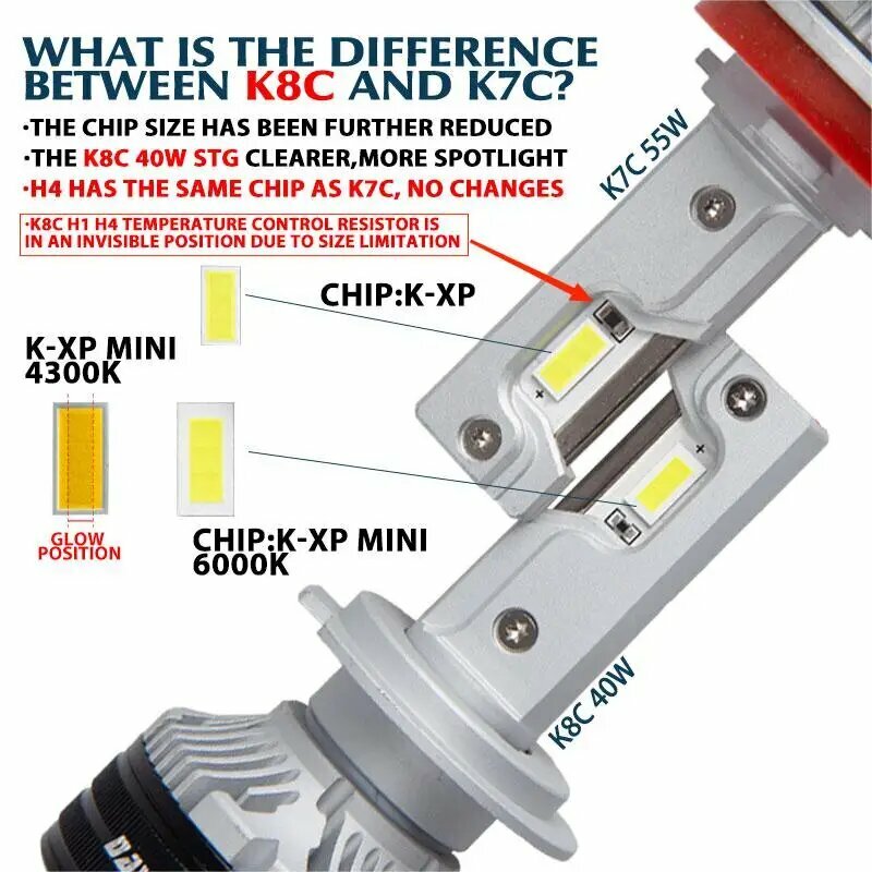 DAWNKNIGHT K8C 40 Вт K7C светодиодная долговечная версия H7 H4 H11 Светодиодная лампа для фар 3 медные трубки светодиодные лампы для автомобиля H1 HB3 9005 HB4 9006, 6000K, H4 интересное: