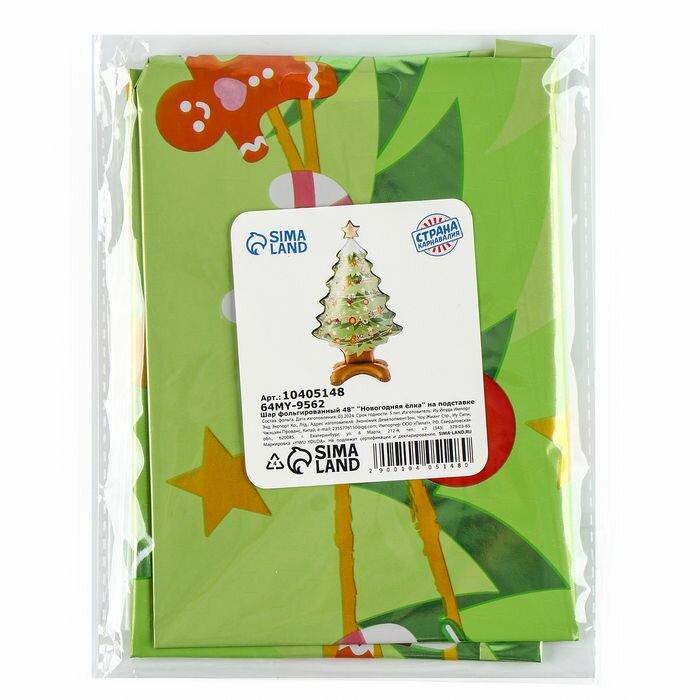Шар фольгированный 48" Новогодняя ёлка , на подставке интересное: