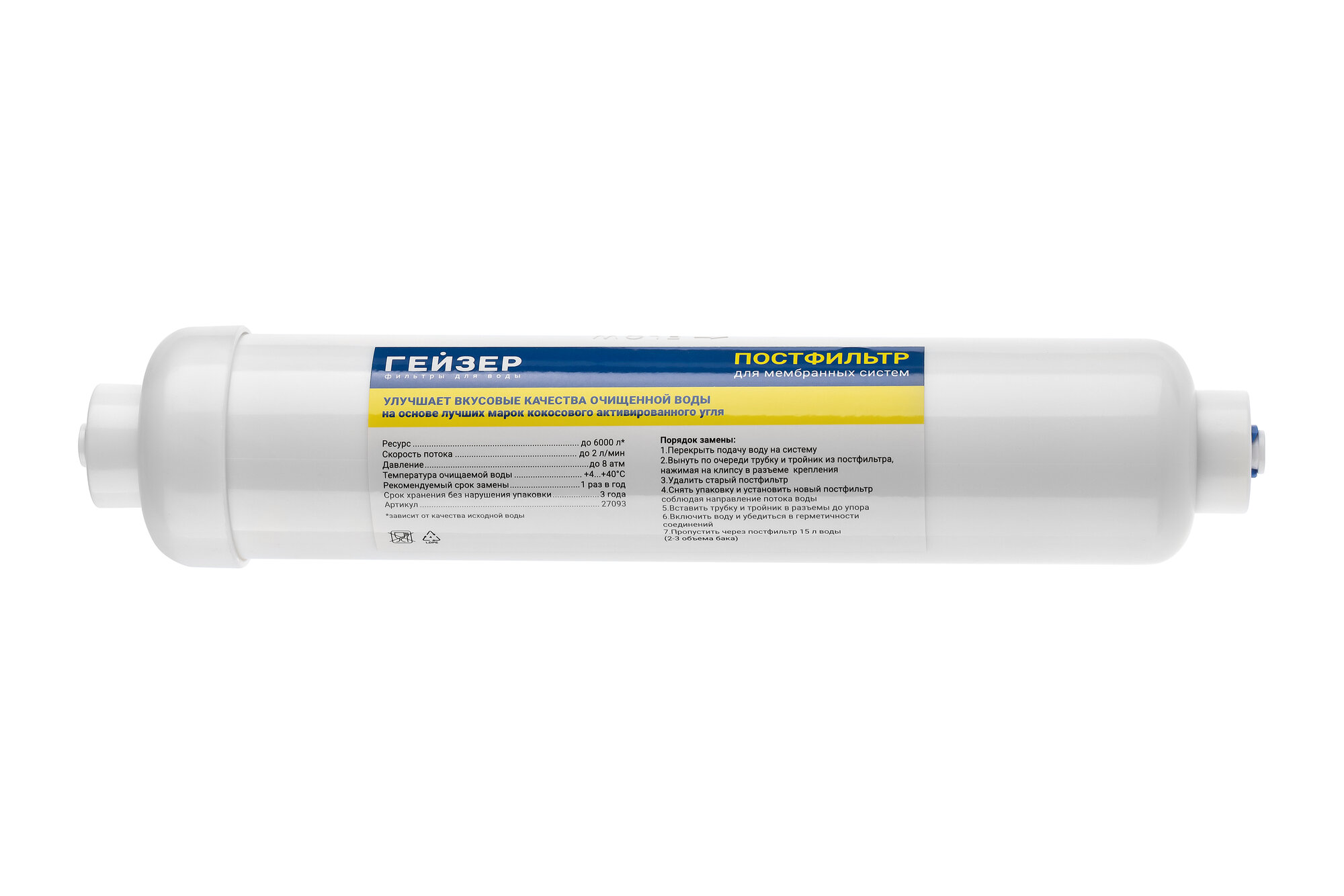 Сменный модуль для систем фильтрации воды Гейзер Угольный постфильтр RO 27093(для Гейзер Престиж)