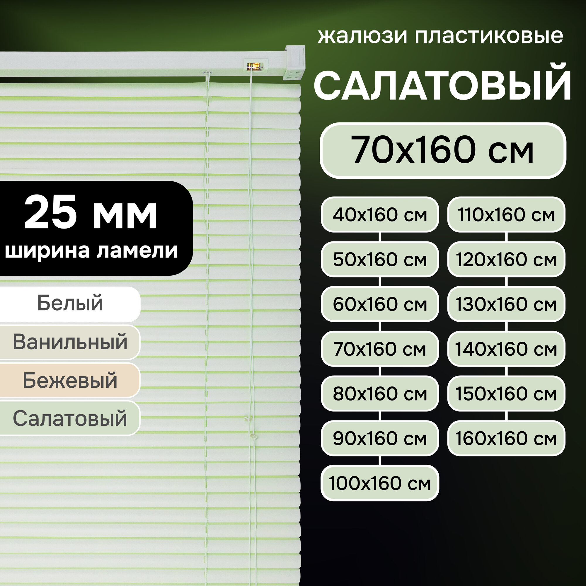 СохранитьЖалюзи горизонтальные Эскар, 70х160 см, пластик, салатовый интересное: