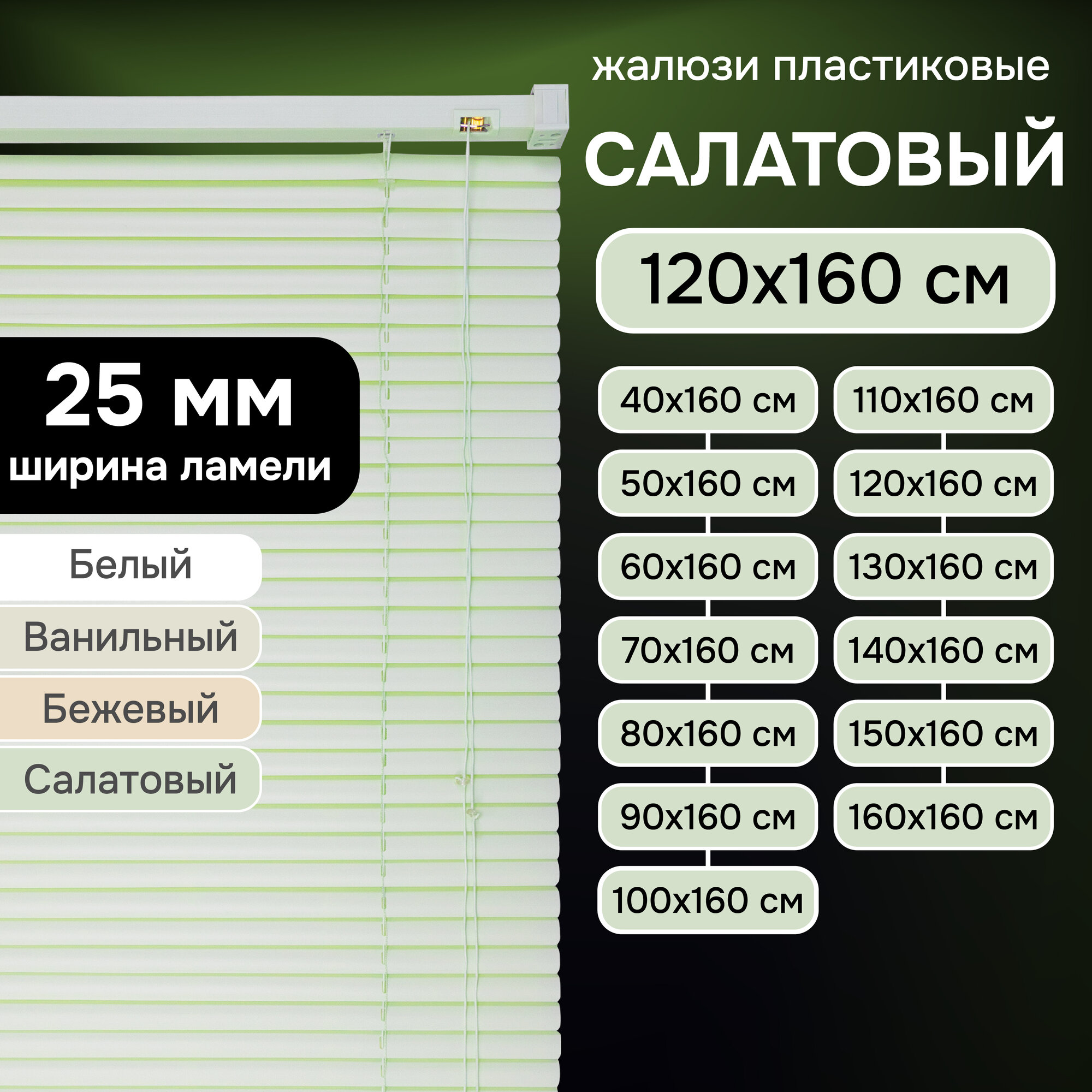СохранитьЖалюзи горизонтальные Эскар, 120х160 см, пластик, салатовый интересное: