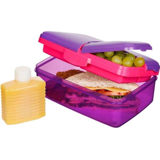 Купить Ланчбокс Sistema 4-х секционный 1,5л с бутылкой фиолетовый (3965)