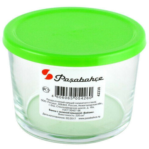 СохранитьБанка малая "Бэйсик" 220мл. с зеленой крышкой 42230SLB GR интересное: