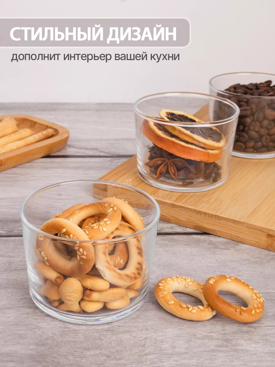 Банка для хранения сыпучих продуктов / соли / специй /чая / кофе 3-х секционная 400 мл 11,5*11,5*20 см "Crystal glass" + стеклянная крышка, стекло