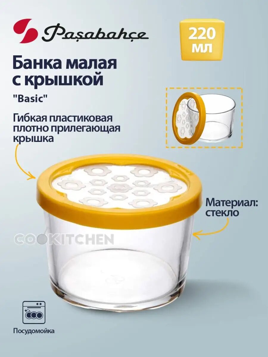 Купить Банка Basic 0,22л малая с желтой биокомпонентной кр. стекло
