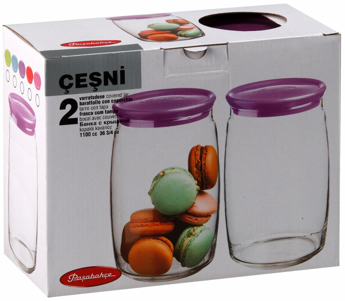 Купить Банка для сыпучих продуктов стеклянная Cesni, 1.1 л, сиреневая пластиковая крышка
