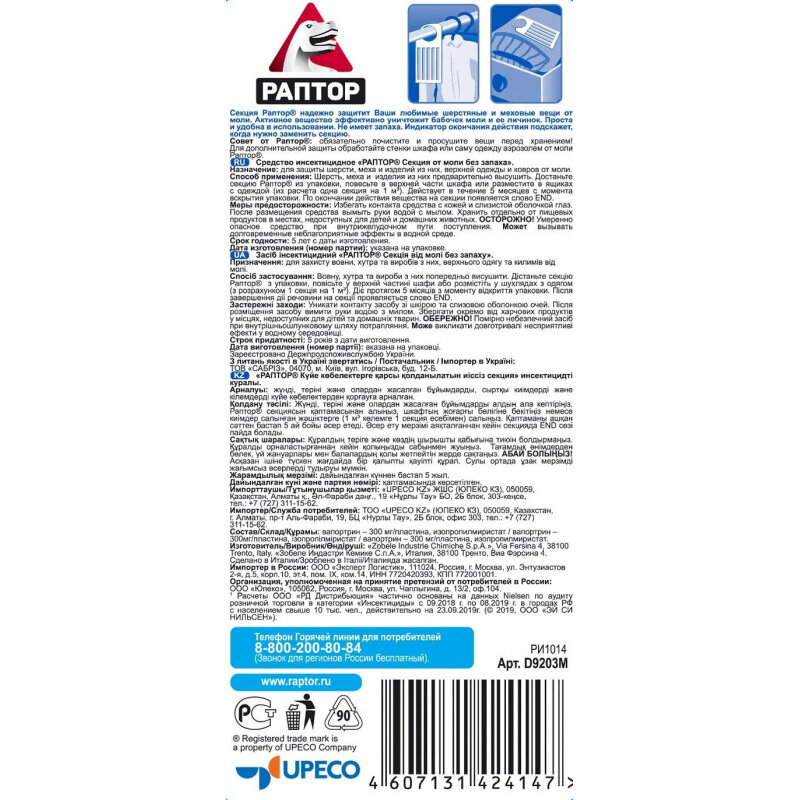 Секция от моли без запаха, Раптор - средство от моли, Комплексная защита, 3 шт.