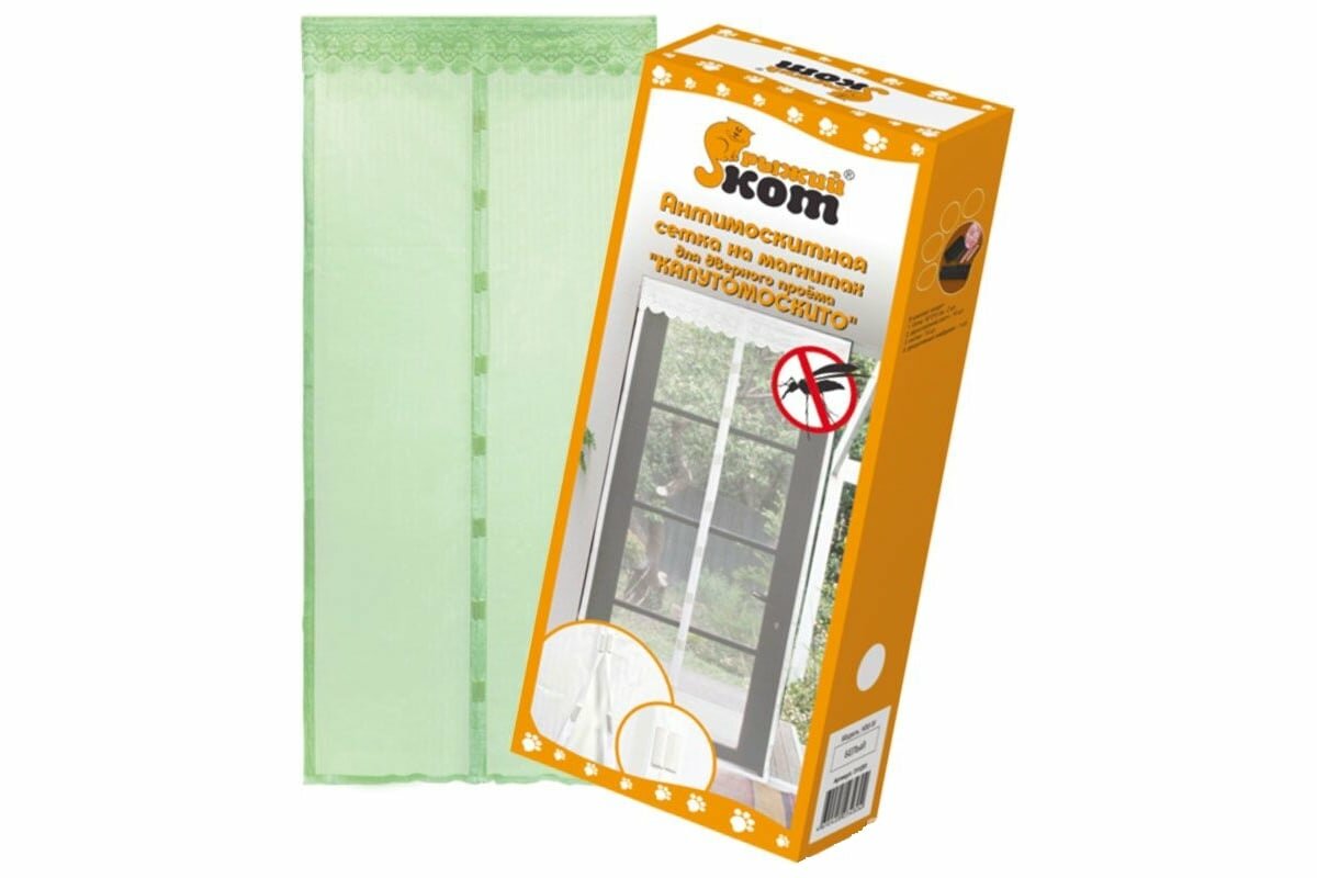 Сетка антимоск. на магнитах Капутомоскито 100*210см зел. (скотч/кнопк.10шт) пл.45г. 311252 Рыжий Кот