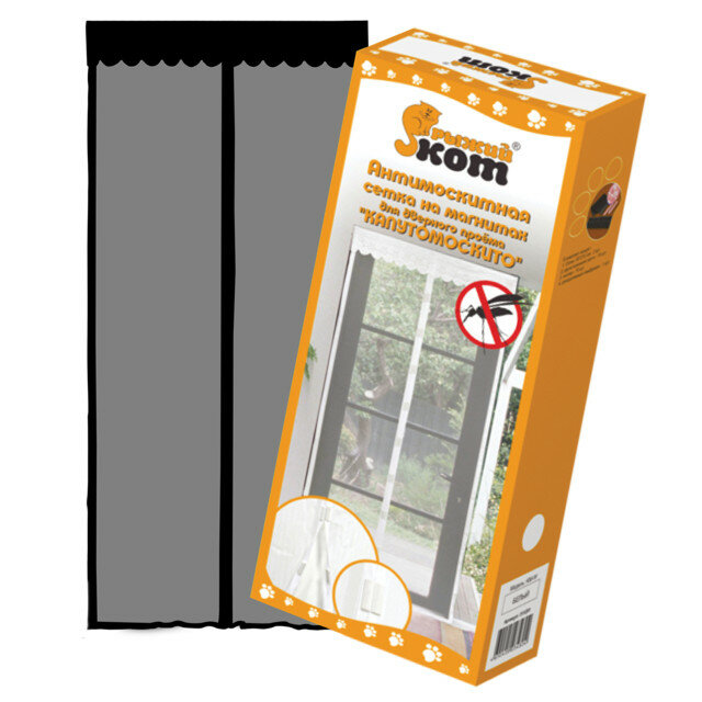 Сетка Антимоскитная на Магнитах Капутомоскито Черная 100*210 9 Магнитов (10) Рыжий КОТ 311253 .