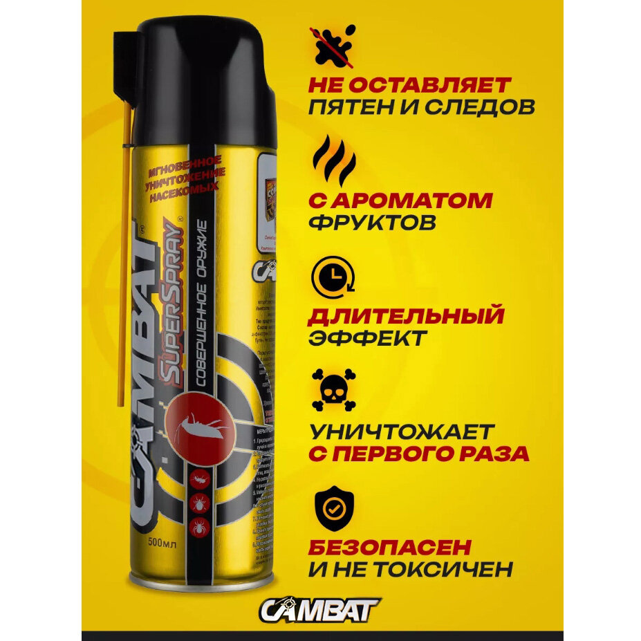 Аэрозоль от всех насекомых "Combat Super Spray" (Золотой), 500 мл - 2 баллона