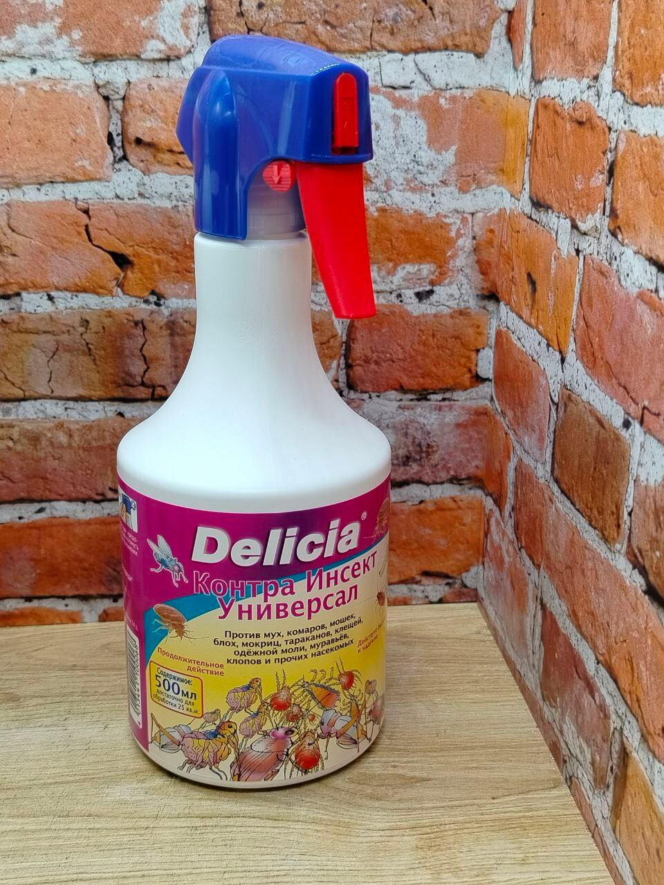 Средство Delicia Контра Инсект спрей против клопов, тараканов, блох, муравьев, моли, мух, 500 мл