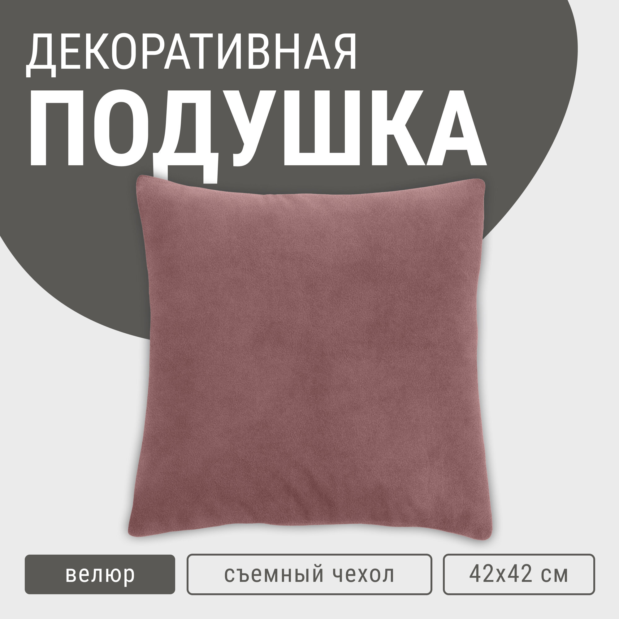 Декоративная подушка DecorBazar, 42х42 см, мебельный велюр, Пудра