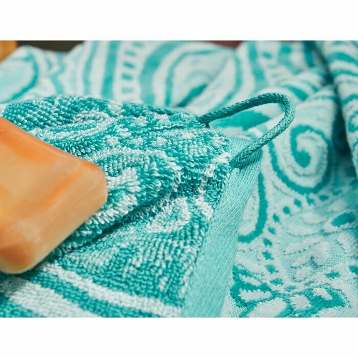 Полотенце велюровое, Guten Morgen 1 шт. 50х90, Дели, бирюзовое, хлопок 100%, 500 г/м2