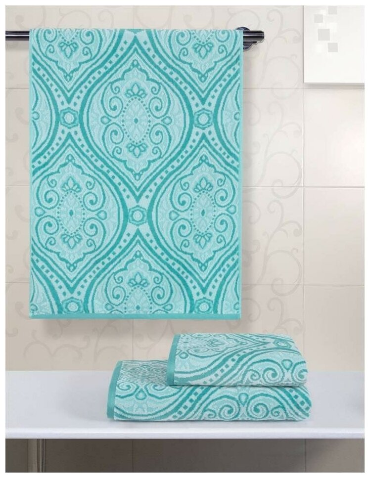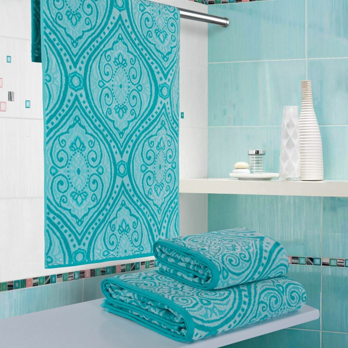 Полотенце махровое Delhi turquoise, орнамент, голубой; размер: 70 х 140