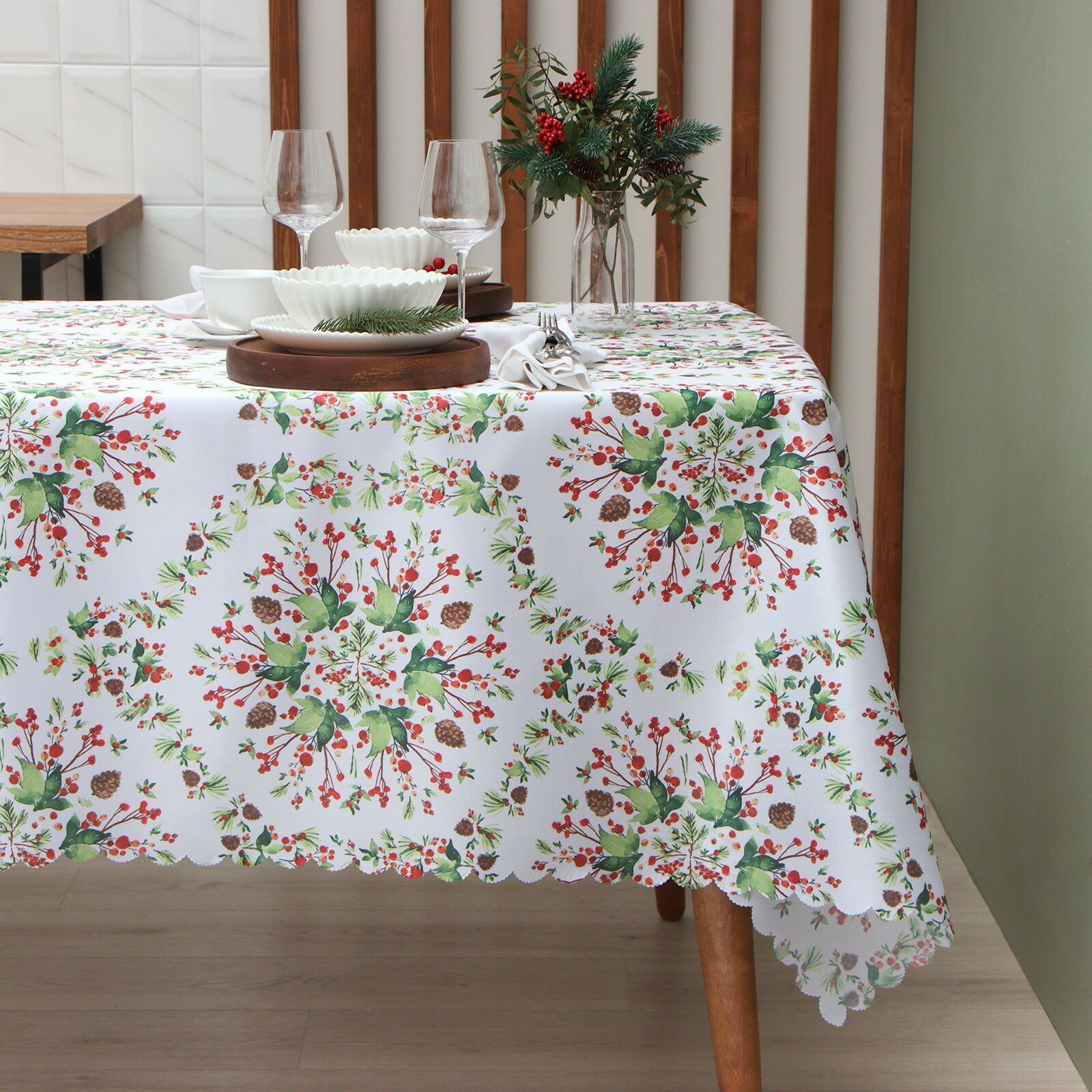 Скатерть «Доляна» "Хвойный узор", 110*145 см, 100% п/э