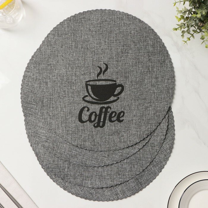 Купить Набор салфеток сервировочных Доляна Coffee, 4 шт, d=37 см, цвет серый