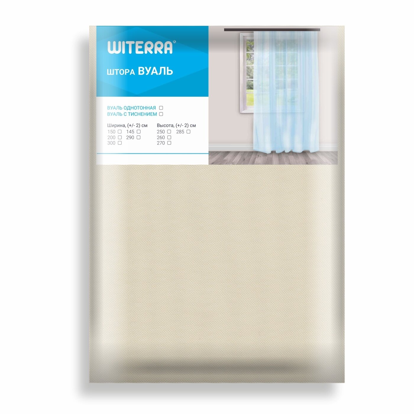 Тюль Witerra, вуаль, молочный, полупрозрачный, на ленте