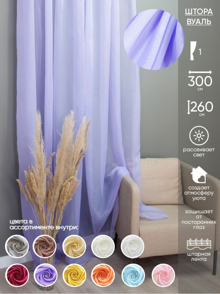 СохранитьШтора вуаль Witerra, 300х260 см, сиреневый интересное: